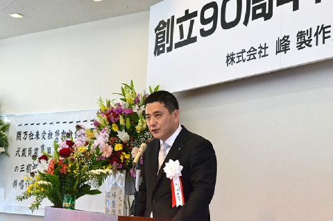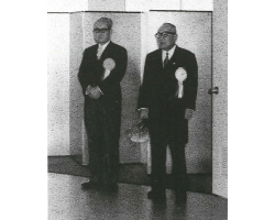 竣工式における峰嘉六社長(右)及び峰貫一副社長(左)