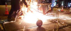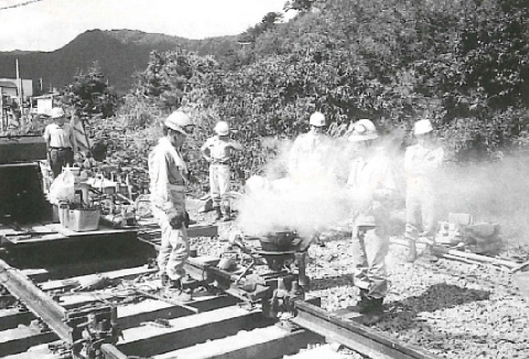 東海道新幹線工事へテルミットレール溶接(MT2)施工。