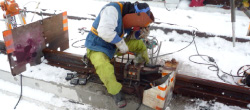 北陸新幹線(長野~金沢)工事へレール溶接施工。