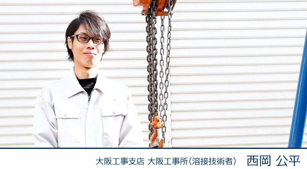 大阪工事所では、主に関西圏のJRや私鉄等のレール溶接施工を行っています。業務範囲は、古くなったレールやキズのあるレールを新品のレールと交換し溶接することと、レール溶接した箇所の竣工検査です。私は作業責任者として、現場のレール溶接作業指揮や、作業員の安全を監視していますが、現場で指揮をしながらも、作業の進捗によりフォローも行っています。