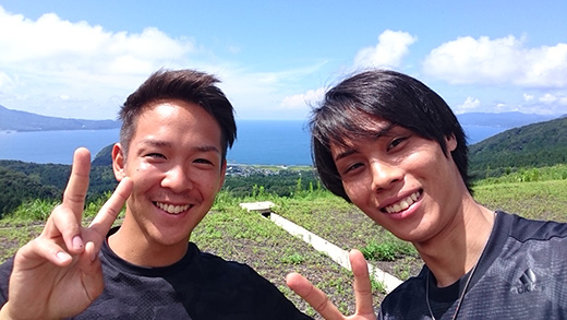 (昨年夏、石川県白山市の徳光パーキングエリアにて、後輩の澤本くんと)