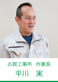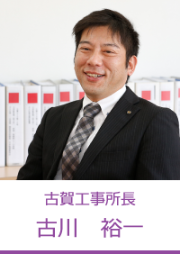 古 川現場責任者として、とにかく安全第一! 絶対にケガが発生しないように、常に心掛けています。