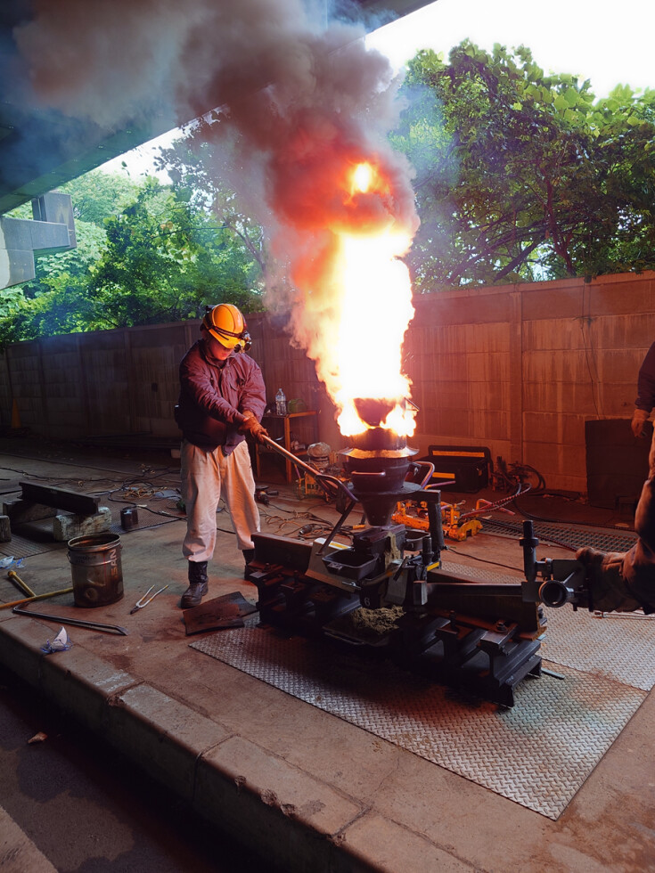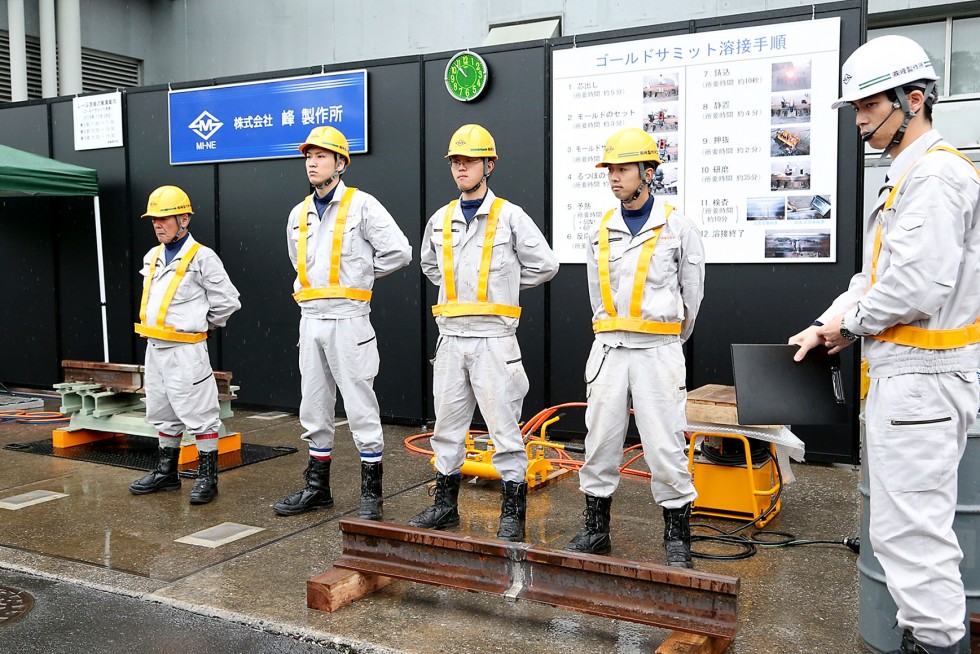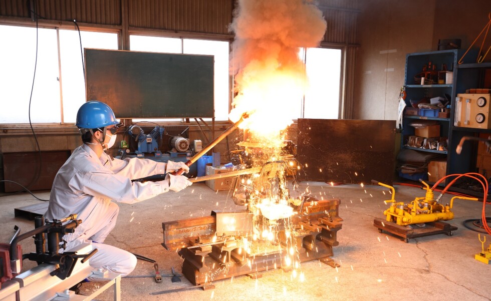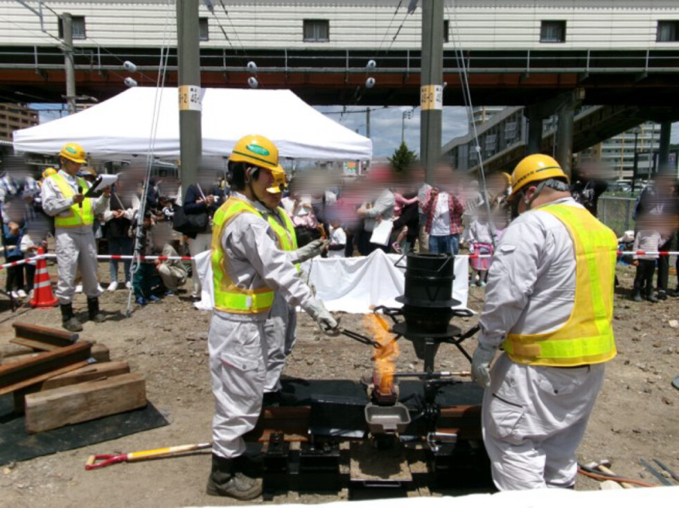 屋外での溶接実演では、ゴールドサミット溶接とテルミット頭部補修溶接を実施いたします。弊社は本年4月に創立100周年を迎えました。