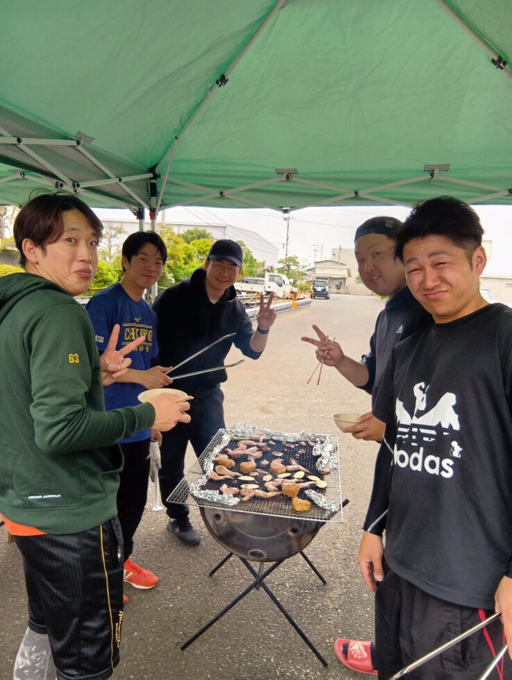 老若男女全員が代打で出場し、みんなでつかんだ優勝です。そして試合終了後は、慰労と親睦を兼ね、九州工場内でみんなでバーベキュー!