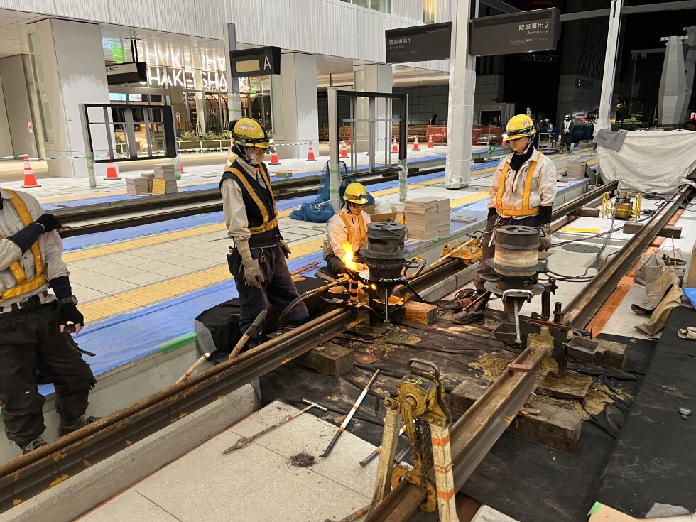 24時頃の終電が通過した後より施工が始まり、終了したのは午前3時過ぎでした。