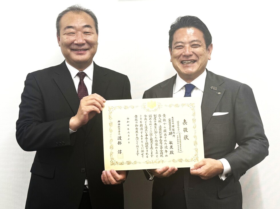 このたび、神田税務署より「優良申告法人」として表敬訪問を受けました。