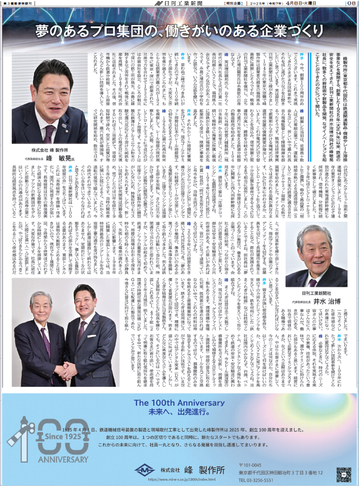 これからも鉄道の明るい未来に向けて少しでもお役に立てるよう、社員一同精進して参ります。