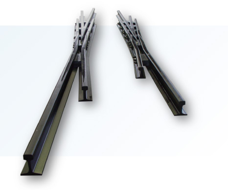 木材の不足から、使用後にもスクラップ回収できる鉄を材料に、地球環境にやさしい省資源型の『まくらぎ』を使用した分岐器です。組立精度が高く、軌道狂いもほとんどありません。また分岐器の軌道部及び転換部の保守量も大幅に軽減を可能にしました。