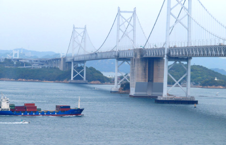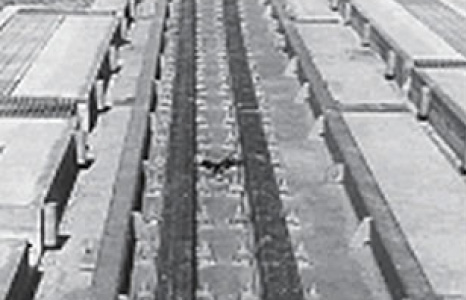 当社は、世界で初めて鉄道と道路の併用橋に用いられた緩衝桁用軌道伸縮装置の開発・設計・製作ならびに走行試験に加わりました。設計上、橋のたわみ等をすべて考慮し、±750mm伸縮可能なことから1500型と称されるものです。EF形電気機関車9重連による走行試験では、設計に対し1500mmの余裕が確認され、昭和63年4月10日瀬戸大橋線(本四備讃線)として開業しています。